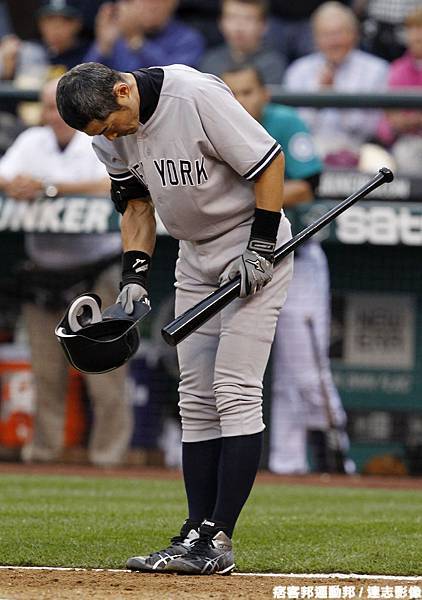▲穿著洋基隊球衣的ICHIRO向西雅圖球迷道別。(圖片來源:痞客邦運動邦)
